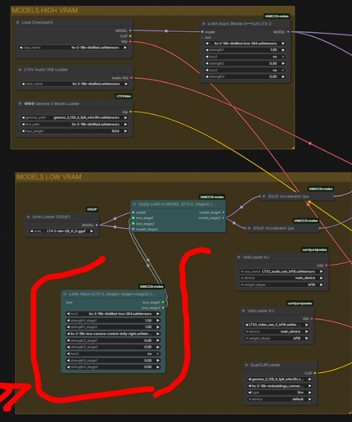 You’ll notice staged logic in the workflow (model stage 1 vs stage 2). The goal is consistency and control: you can structure when and how LoRA influence is applied across the pipeline without constantly rewiring the entire graph. In this workflow you’ll see dedicated IAMCCS LTX-2 nodes for model/LoRA I/O handling as well. 13d_IAMCCS_LTX2_LONG_LENGHT_VID…