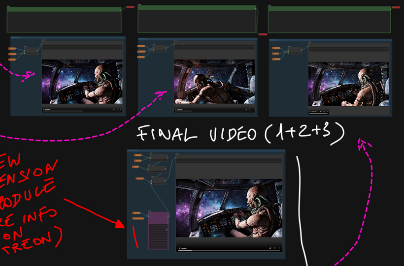 In the shared workflow, segment creation and packaging is repeated in a structured way, so you can preview intermediate videos too (CreateVideo nodes appear along the chain).